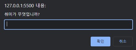 prompt 호출 시 "질문내용"과 입력할 수 있는 "텍스트 상자"와 "확인/취소"